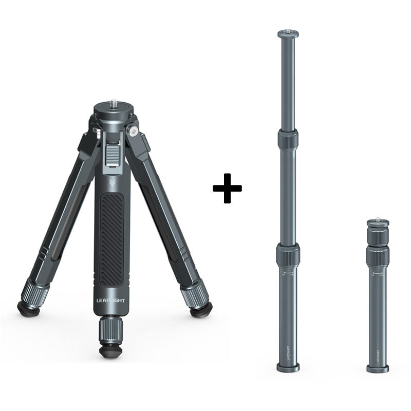 The tripod body is constructed from a high-strength aluminum alloy and carbon fiber combination, offering corrosion resistance and durability. The aluminum alloy is precision-machined by CNC and features an anodized surface.